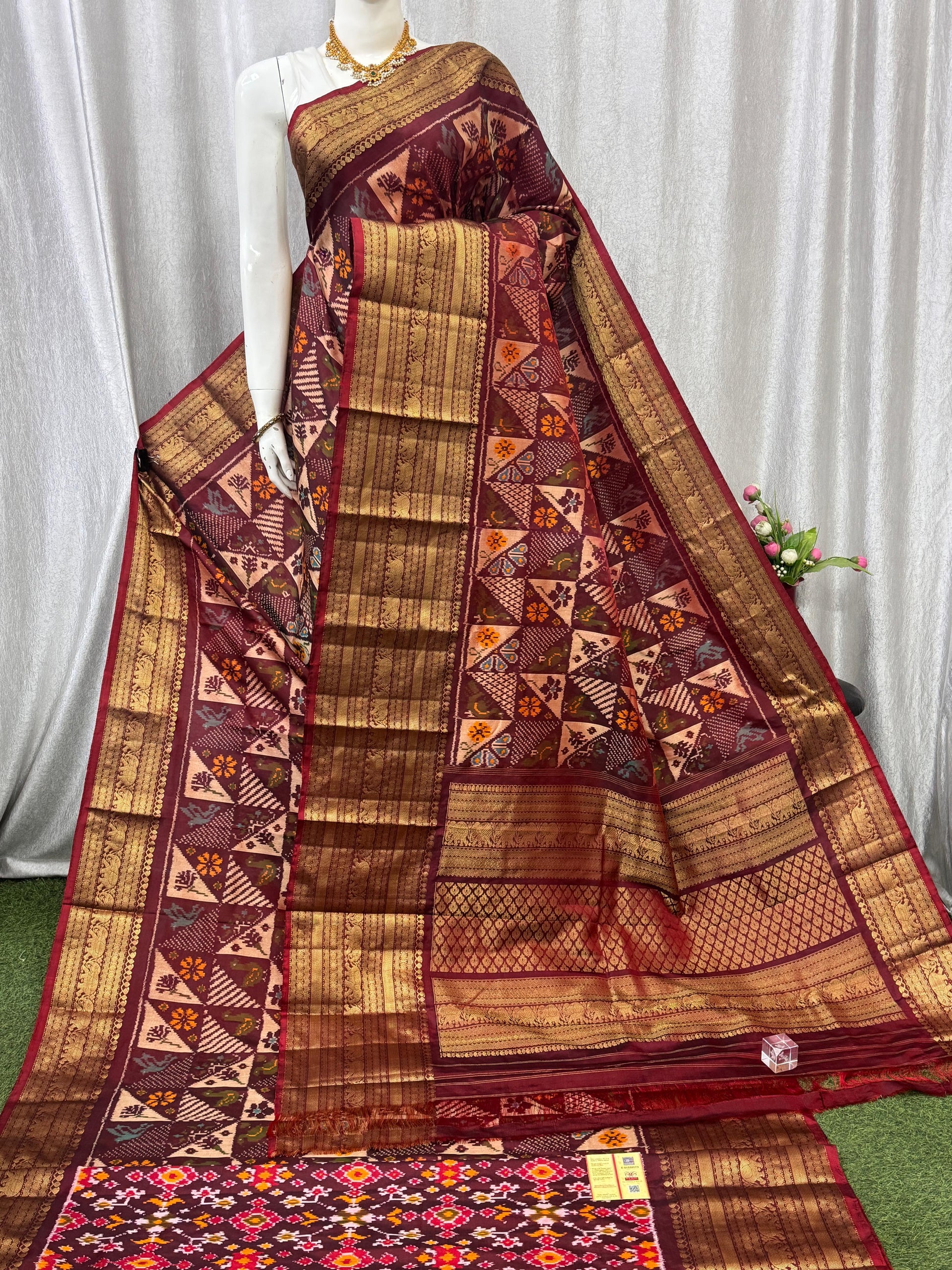 Pochampally Handloom Twill Ikkat Kanchi Boader Pure Silk Saree with Blouse | Double Warp | Silk Mark Certified