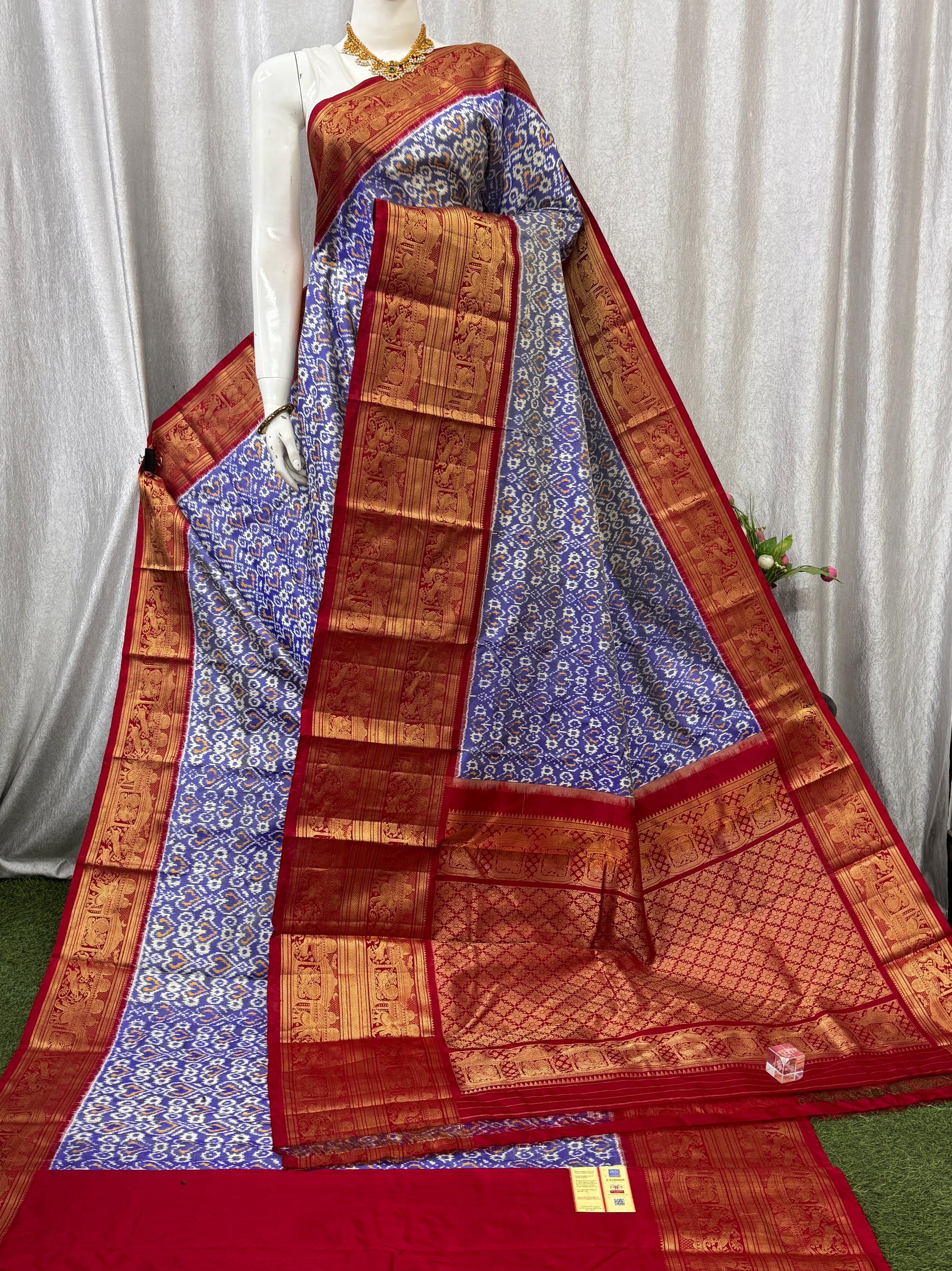 Pochampally Handloom Twill Ikkat Kanchi Boader Pure Silk Saree with Blouse | Double Warp | Silk Mark Certified
